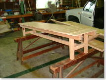 下の縁台と一緒に使っていただこうと作りました。テーブルにもなるし、ベンチにもなります。