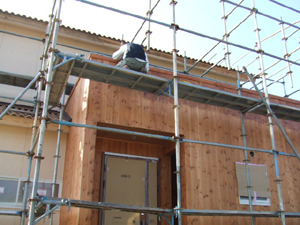 外壁の木やウッドデッキを家族みんなで塗装してくれたり、珪藻土を塗ったり、床板のワックスかけをしたりしました。