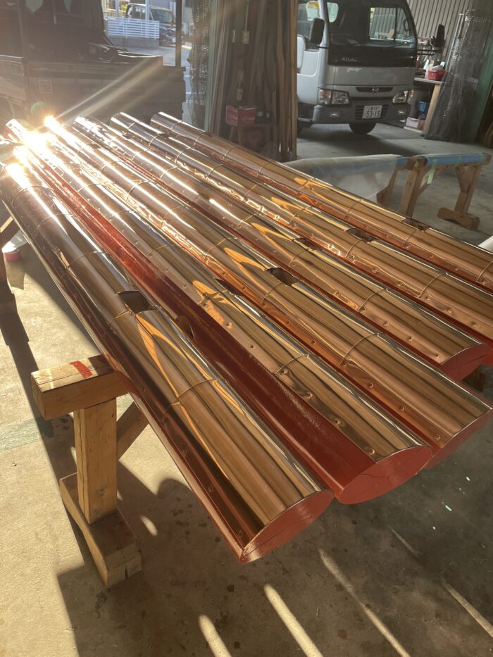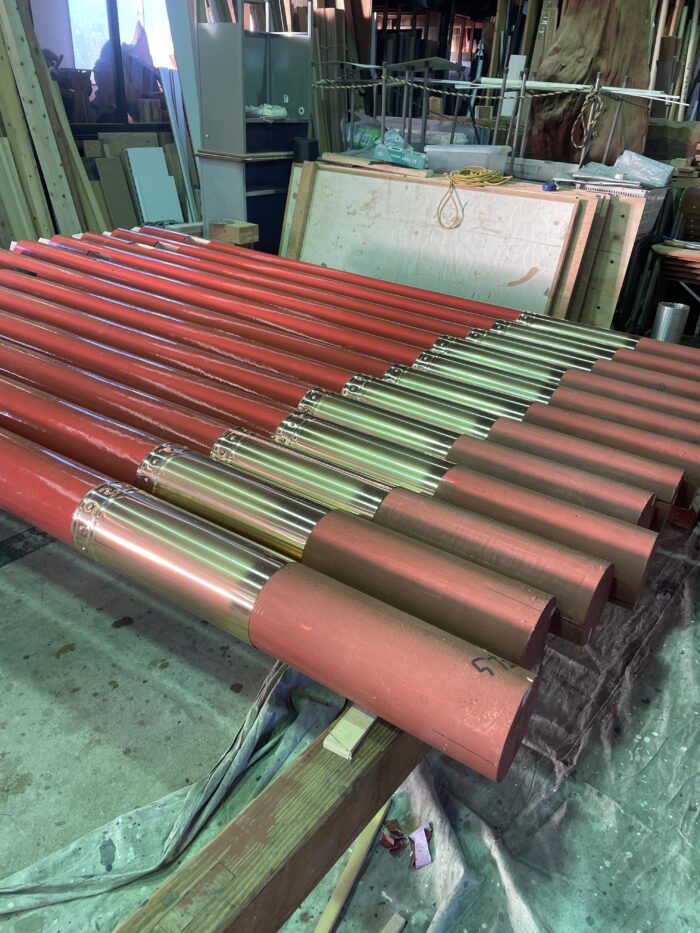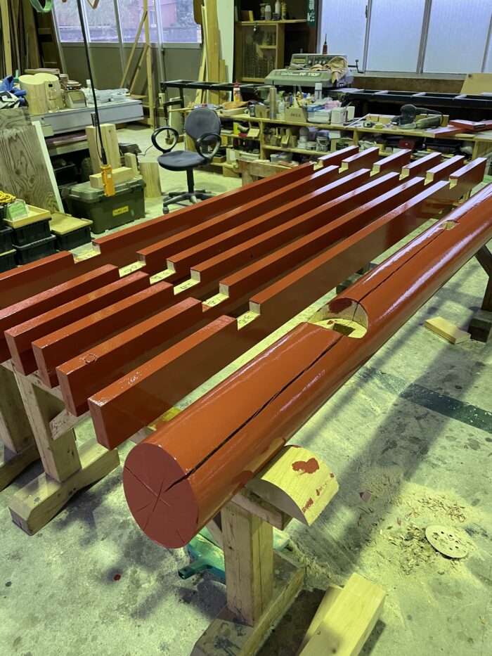 工場に塗装屋さんがきてくれて鳥居の色を前の色