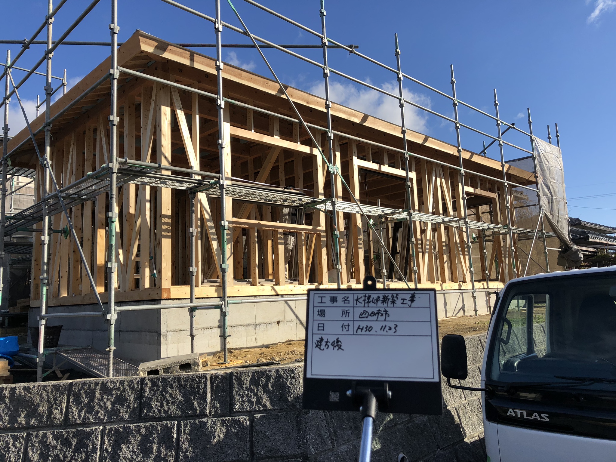 そんなご希望で敷地にあった無駄のない間取りを一緒に考え、予算を考え、27坪平屋建てに決まり家創りが始まりました。