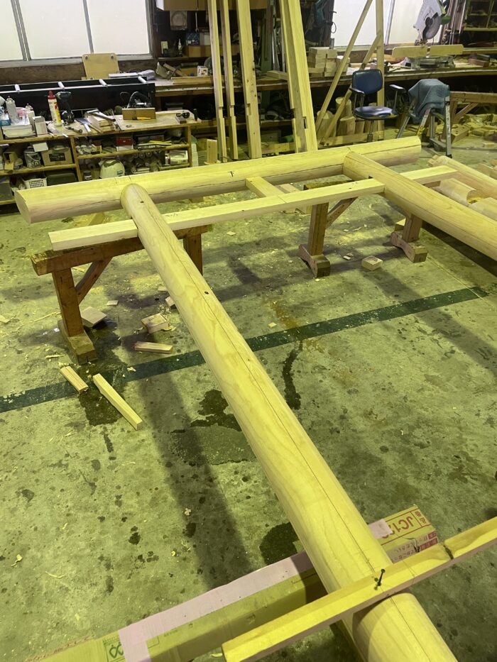 ヒノキ丸太で鳥居を造らせていただくと同時進行で