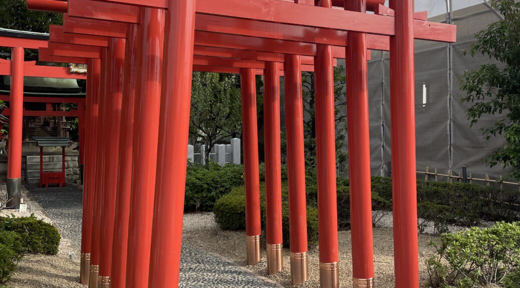 工場に塗装屋さんがきてくれて鳥居の色を前の色